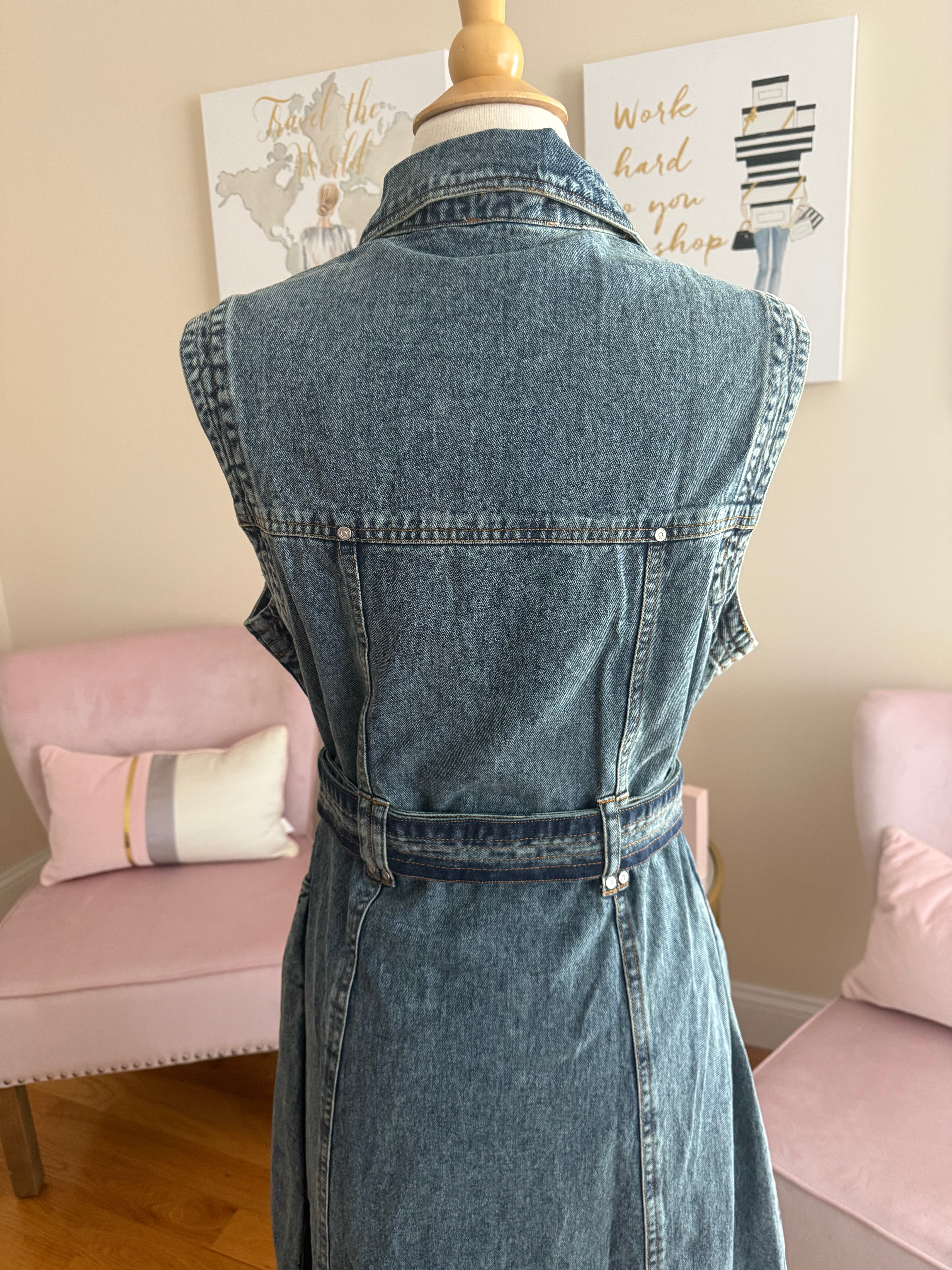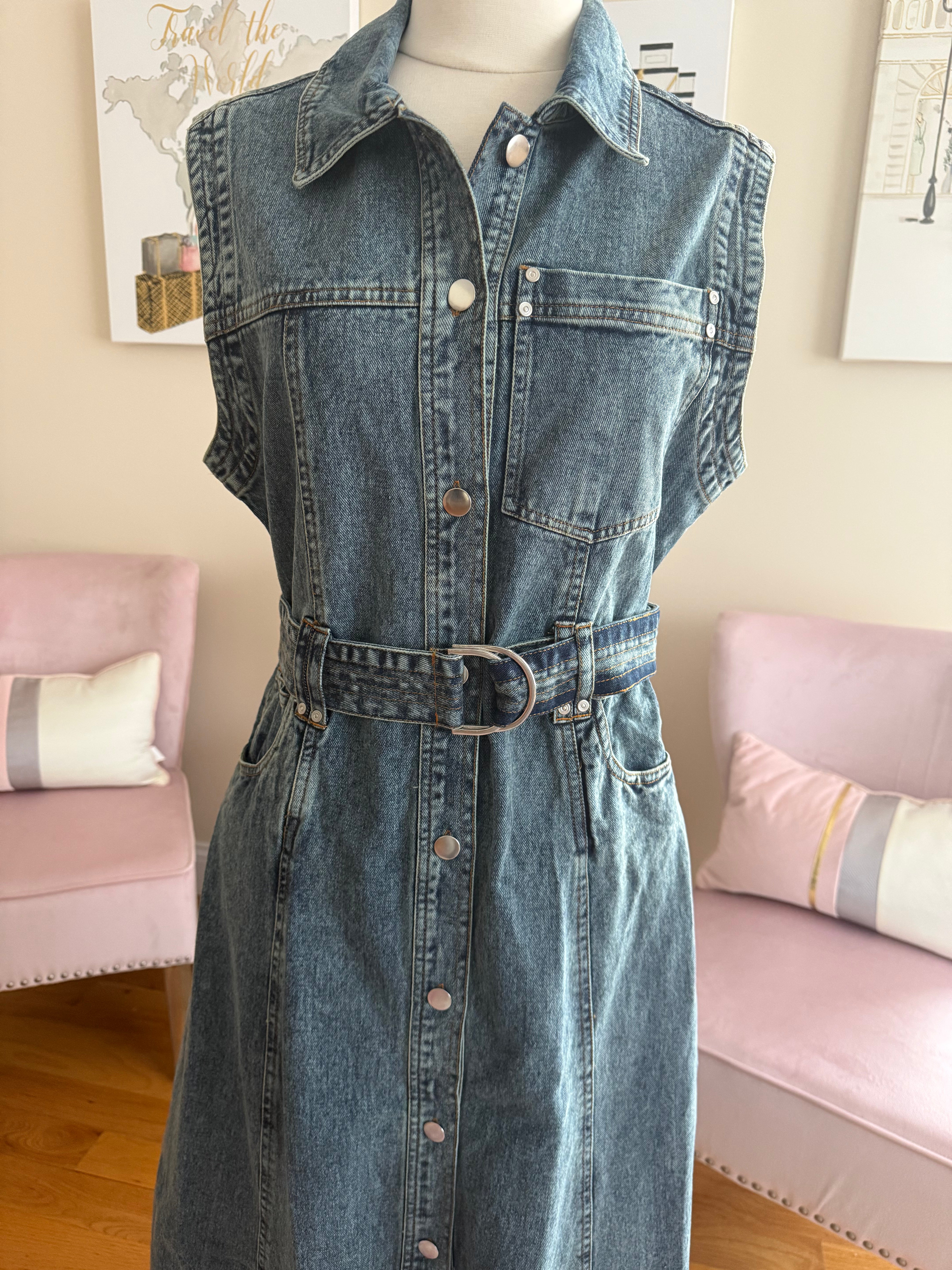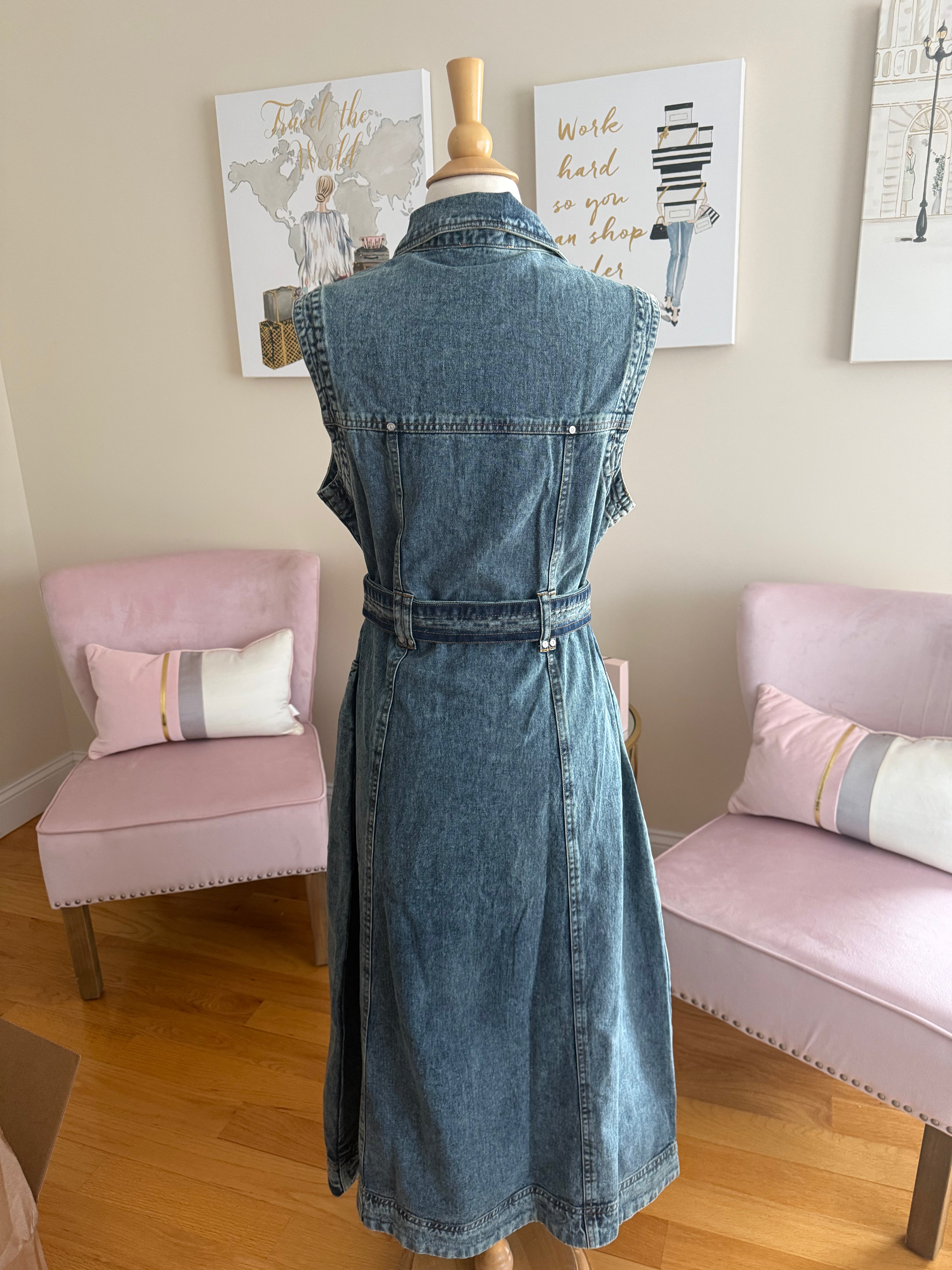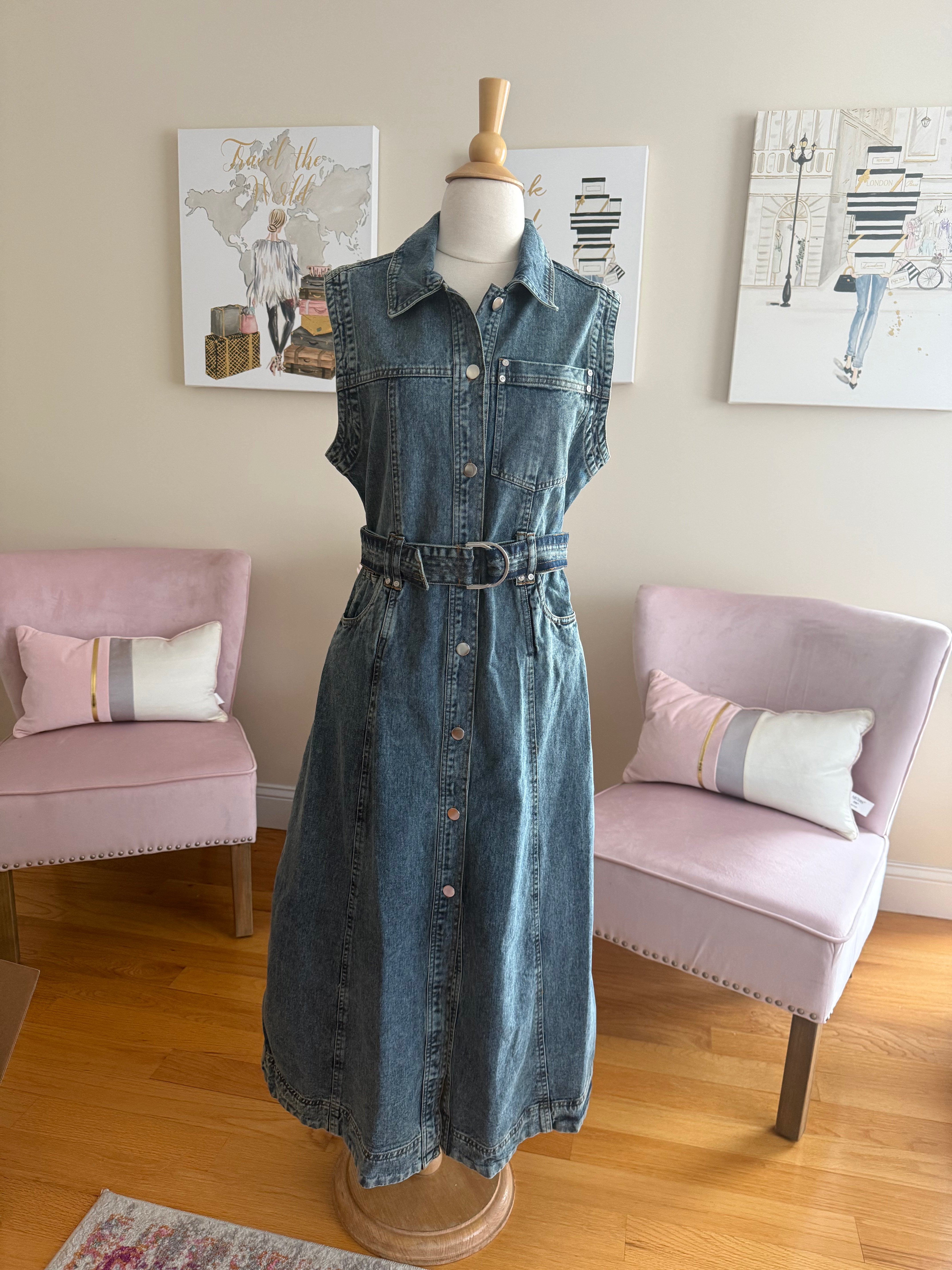 Denim belted midi dress