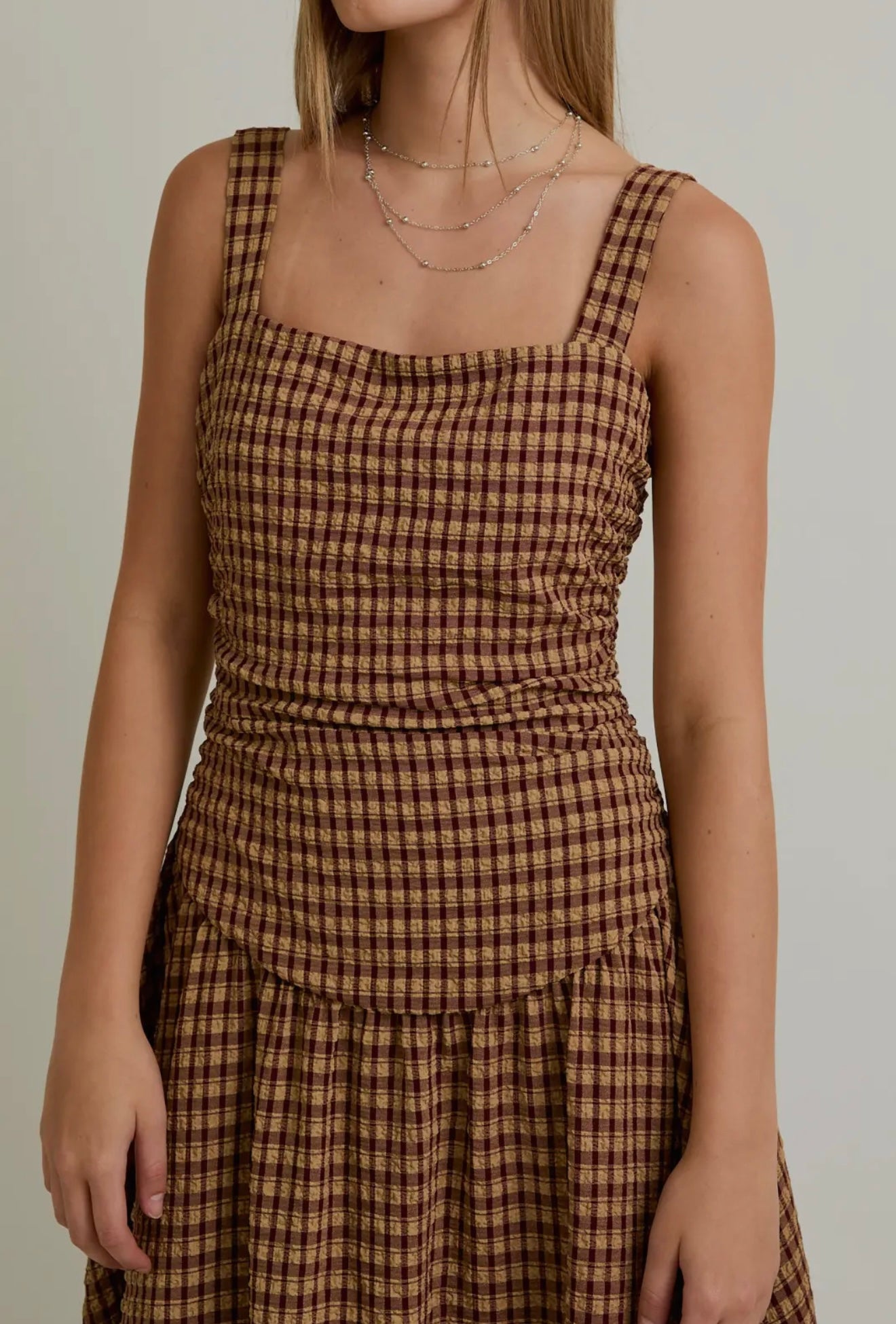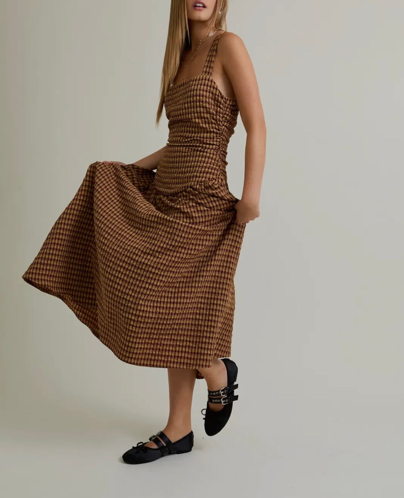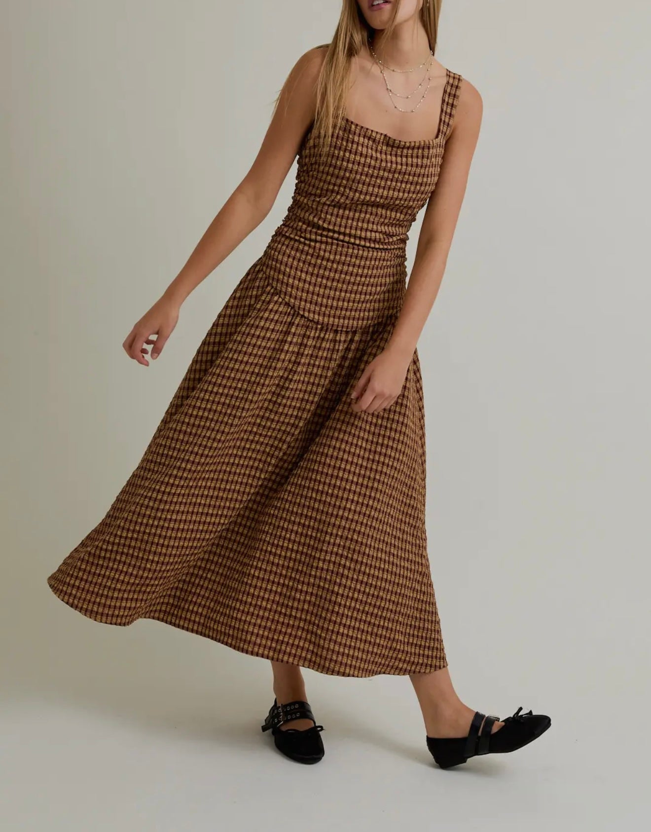 Tan/brown check / Extra small / Dropped waist midi dress
