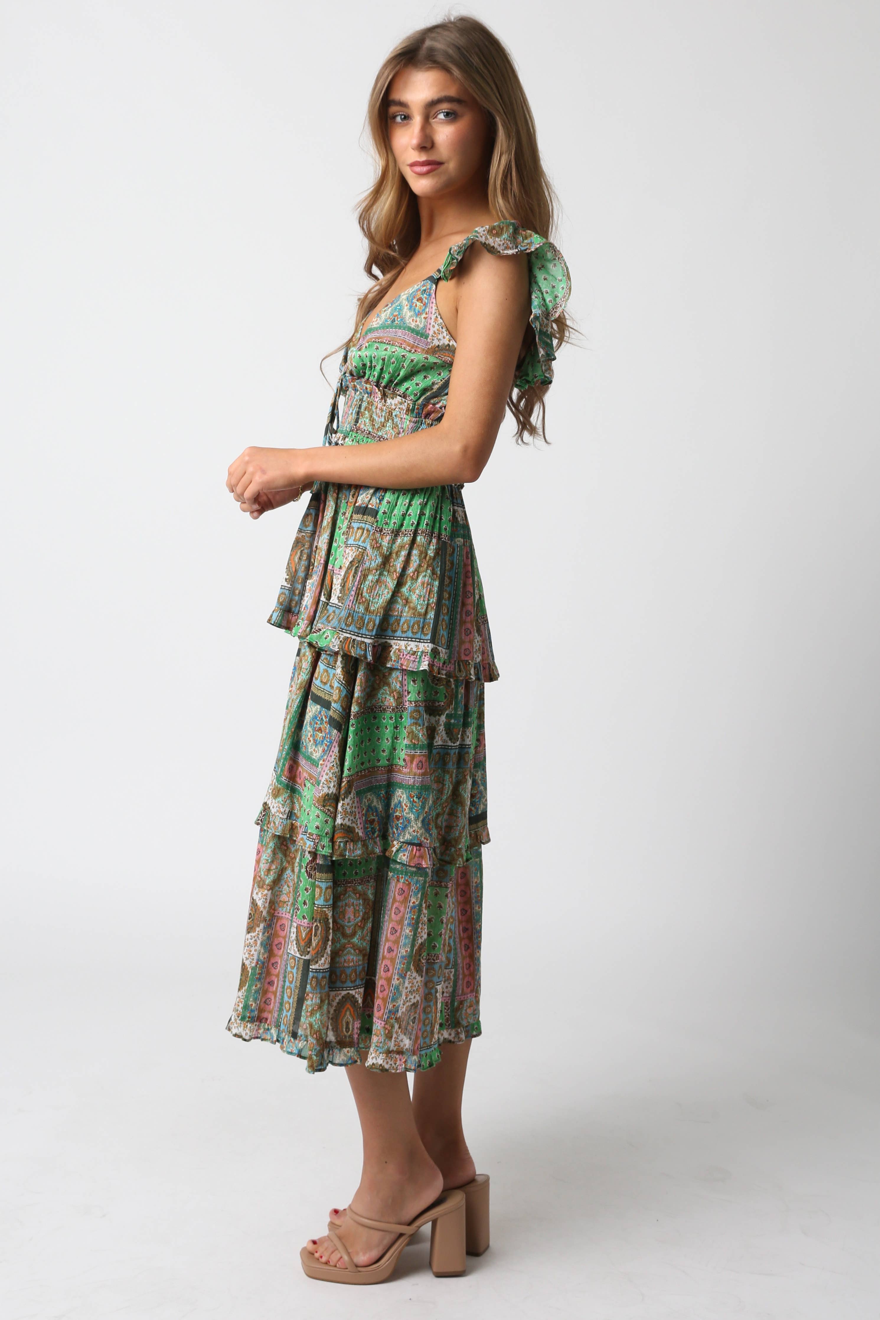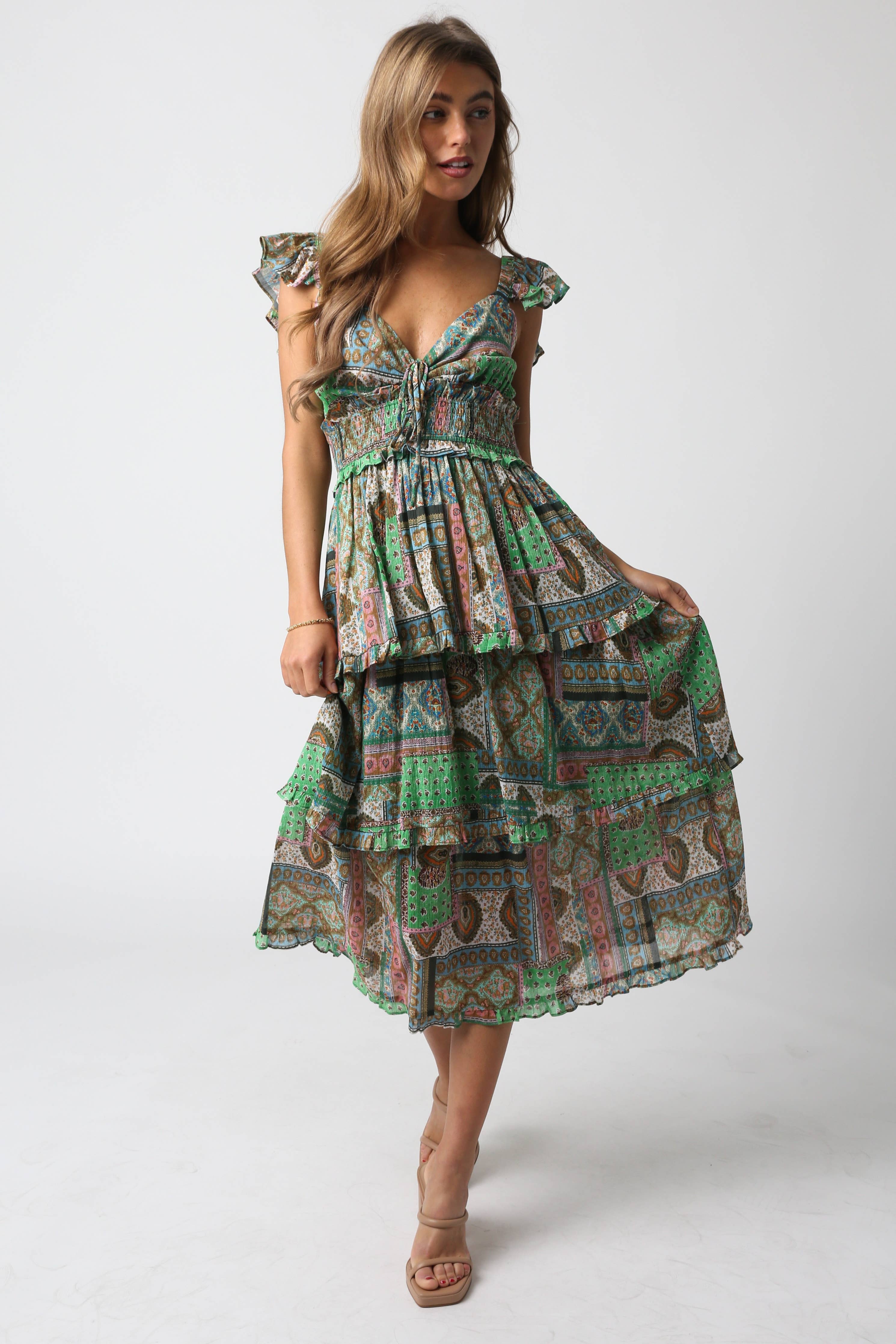 Our Paige Dress features a sleeveless and a tiered layer Woven.